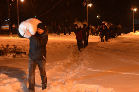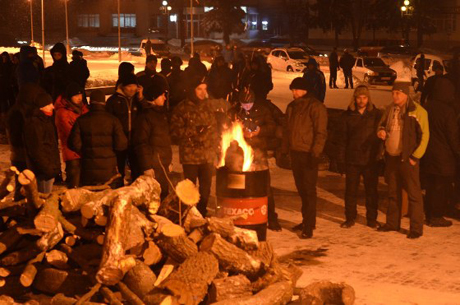 Под стенами Ровенской ОГА активисты укрепили подходы к зданию сотнями мешков со снегом и шинами.