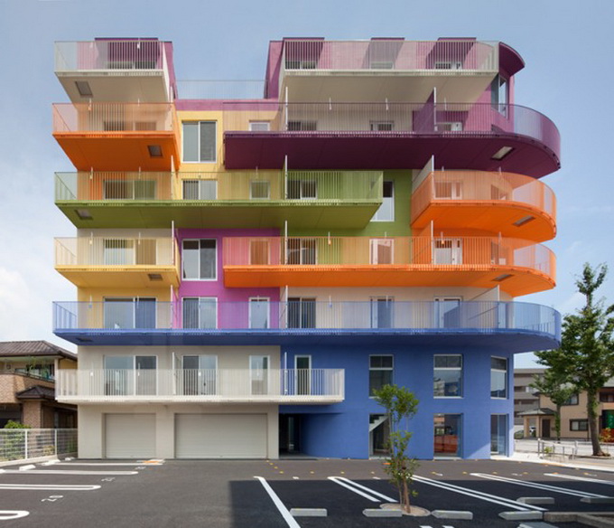 Архитектурная фирма Ciel Rouge, базирующаяся в Токио, спроектировала это разноцветное здание в городе Окадзаки.