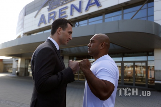 Боксеры впервые заглянули друг другу в глаза перед камерами и выступили с трибуны, сообщает ТСН.