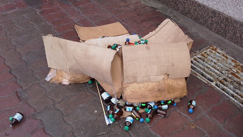 Также в Киевсовете нашли огромную коробку с пузырьками аммиака, которую вынесли и поставили возле входа в здание.
