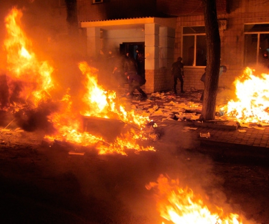 В Полтаве сторонники Майдана разгромили и подожгли офис областной организации Партии регионов.