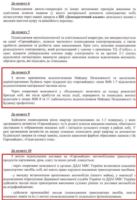 Согласно документам, агенты должны были дискредитировать лидеров оппозиции, устраивать драки между различными организациями, которые находились на майдане.
