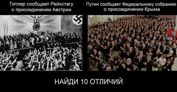 После узаконивания аннексии Крыма и Севастополя пользователи соцсети сравнили президента России Владимира Путина с Гитлером и посмеялись над его высказываниями о «бендеровцах».