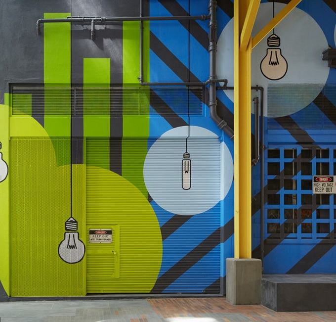 В верхней части запада Мельбурна дизайн-студия Mim перепроектировала старые АЗС в новое пространство с яркими цветами.