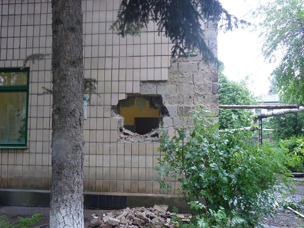 В Славянске (Донецкая область) поздно вечером 1 июня в результате артобстрела повреждены здание детского сада, близлежащие дома, склад магазина стройматериалов, а также задета линия электропередач.