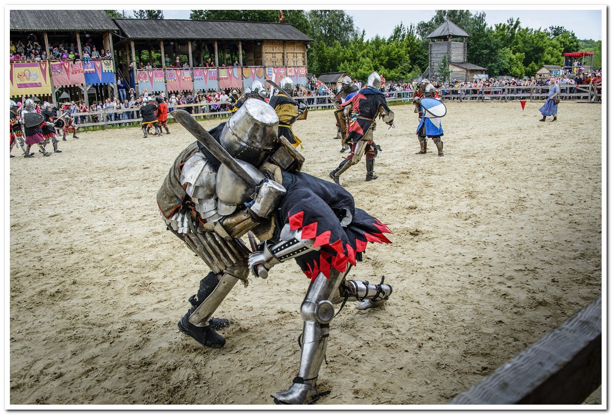 В течение двух дней гости Древнего Киева могли наблюдать за полноконтактными (в полную силу) боями с применением наступательного и защитного оружия, характерного для Средневековья. Рыцари сражались в доспехах, вес которых превышает 30 кг. Они продемонстрировали мастерство владения оружием в бескомпромиссных поединках, боях 5 на 5 воинов и 21 на 21 боец.
