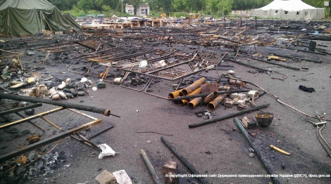 В четверг, 19 июня, Государственная пограничная служба Украины обнародовала фотоматериалы о состоянии лагеря пограничников в Донецкой области после обстрела из минометов, 17 июня.