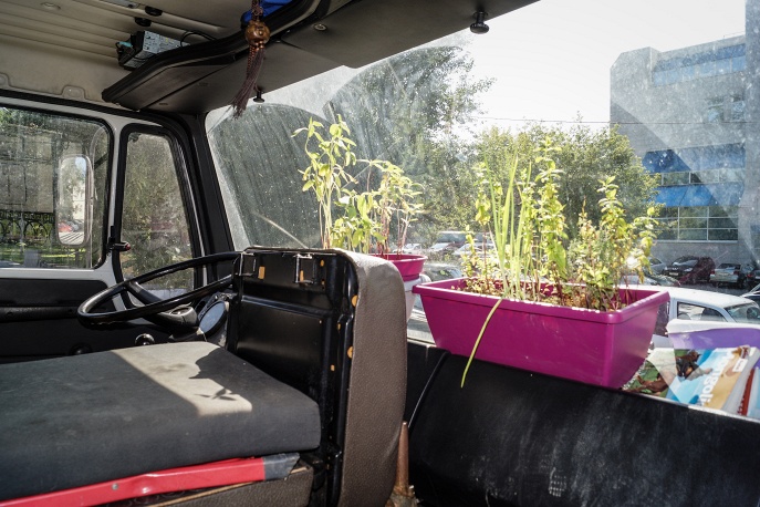 Транспортом им служит переоборудованный 34-летний германский армейский тягач. Жилая часть трейлера была сделана путешественниками по спецзаказу в Марокко и представляет собой полностью приспособленный для автономного проживания бокс с плитой, холодильником, душем и туалетом.