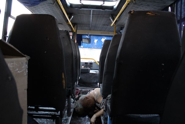 Как ранее сообщалось, сепаратисты расстреляли на въезде в Донецк автобус с бойцами «Правого сектора». По их данным, семь человек убиты, еще 13 получили ранения. В соцсетях появились фотографии и видео записи расстрелянного автобуса: