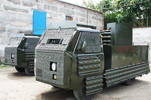Эдакая безысходность подтолкнула Николаевский тепловозо-ремонтный завод (НТРЗ) тоже помочь украинским военным в сложной битве на востоке страны. Здесь овладели искусством бронирования обычных серийных авто. В частности, для участия в АТО на НТРЗ забронировали несколько УАЗов и КАМАЗ.