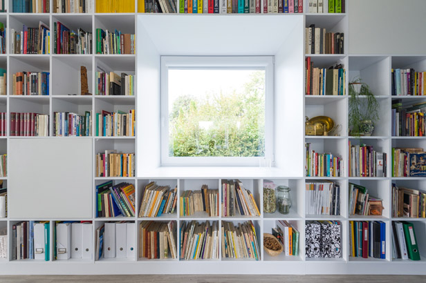 Földes & Co. Architects Ltd. создали уютный дом в Венгрии для владельцев огромной библиотеки. Книжные шкафы очень здорово вписались в интерьер дома.