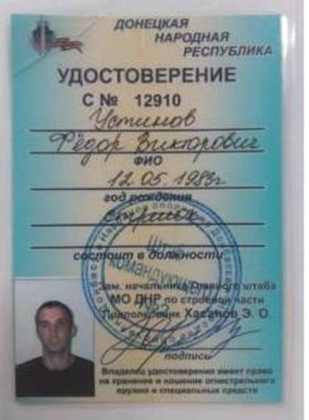 Устинов был одет в военную форму российской морской пехоты. При задержании у него изъято РПК-74 с патронами и снаряженный РПГ-18 «Муха».