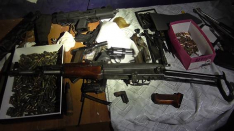 Работники милиции установили, что в состав преступной группы входило 10 мужчин, которые проживали в разных населенных пунктах Запорожской, Киевской и Одесской областей. Совместными усилиями правоохранителей МВД и СБУ изъяли арсенал оружия: 5 гранатометов, 4 пулемета Дегтярева, 15 автоматов Калашникова, пистолет-пулемет SZ-26, 15 винтовок Мосина, обрез охотничьего ружья, пистолет Glock, пистолет Beretta, пистолет Маузер, пистолет ТТ, 3 пистолета Макарова, пистолет Зораки, револьвер типа Наган калибра 7,62 мм, револьвер (Smith & Wesson) 38 калибра и 124 гранаты (РГД, Ф-12, Ф-1 и РГО).