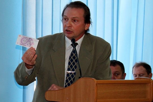 «На сегодняшний день в „Новороссии“ катастрофически не хватает наличных денег, гривен почти не осталось. Люди работают, но не получают зарплату. Общественность поддержала создание такой финансовой системы, и нужно подумать, какой механизм поддержки может быть разработан, чтобы эта система как можно быстрее заработала», — заявил он.