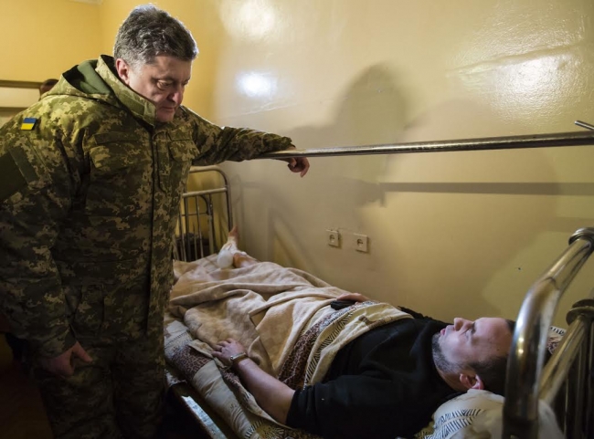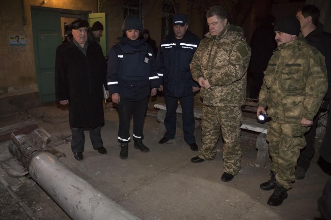 Порошенко осмотрел место трагедии и посетил раненых в результате ракетного обстрела.