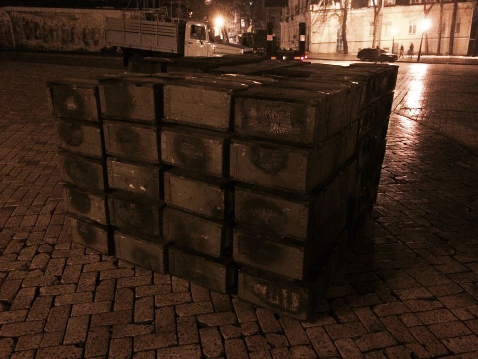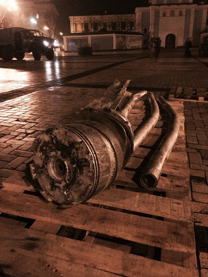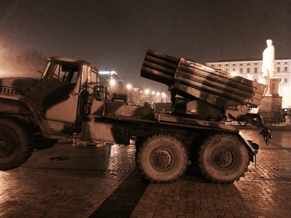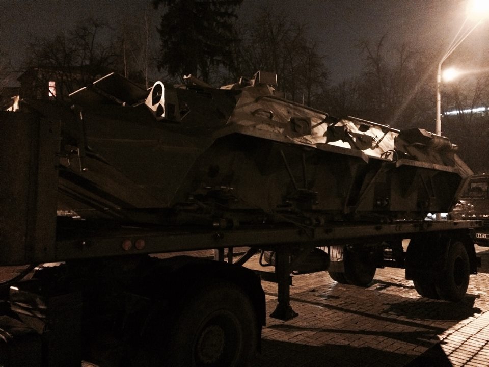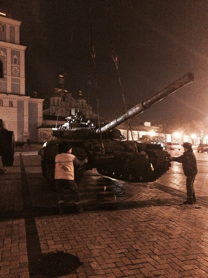 «Михайловская площадь не спит этой ночью...Такого она еще не видела... С фронта свозят российскую технику. Танки, грады, бмп и бтр», — написал на своей странице в Facebook советник главы Службы безопасности Украины Маркиян Лубкивский.