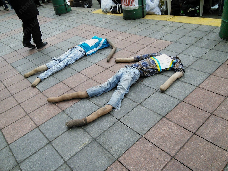 Также активисты установили перед центральным входом в НБУ импровизированный городок под названием «финансовый Майдан», который обнесли частоколом с фотографиями главы НБУ Валерии Гонтаревой, премьер-министра Арсения Яценюка, олигарха Рината Ахметова и других чиновников.