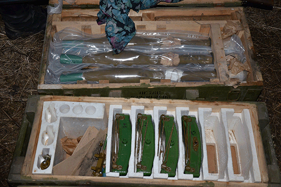 Преступники тщательно замаскировали сам схрон, а в заброшенном доме поставили ловушку – растяжки с минами. Если бы обычный человек или подросток из любопытства случайно залез в дом, взрыв был бы такой силы, что снесло половину села. Из подвала оперативники извлекли: 7 ящиков с патронами калибра 7,62 мм(6160 штук), 5 ящиков с гранами Ф-1 (90 штук и 80 запалов к ним), 8 мин – «МОН-50», 2 ящика тротиловых шашек (52 кг), 11 снарядов «ПГ-7Л» к гранатомету и 11 запалов к ним, 36 ручных гранат «РКГ-3» и 36 запалов к ним, 11 дымовых шашек, 7 противотанковых мин, автомат, гладкоствольное ружье, порох и многое другое.