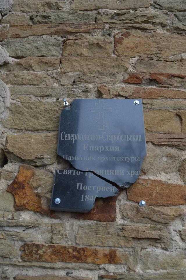 «С начала февраля Троицкое нещадно обстреливали из „Градов“ и артиллерии, здесь куча разбитых жилых домов, есть погибшие среди мирных жителей, — рассказывает Москаль. — Кроме того, боевики разбили каменную православную церковь, построенную еще в 1840-м году. Вокруг церкви куча воронок от обстрелов, а некоторые снаряды попали прямо в здание, пробили крышу и взорвались внутри. Алтарь полностью разбит, иконы посеченные осколками, священные книги валяются на земле... Это один из крупнейших православных храмов Луганщины, который пережил две войны — гражданскую и вторую мировую войну, а также советскую власть. Храм не смогли уничтожить ни немецкие захватчики, ни коммунисты-безбожники, его разрушили теперь те, кто называет себя поборниками „православного мира“. Никакого смысла обстреливать церковь и школу не было, здесь не дислоцировались украинские военные. Ближайший опорный пункт — на окраине Троицкого за три километра отсюда...», — отметил Москаль.