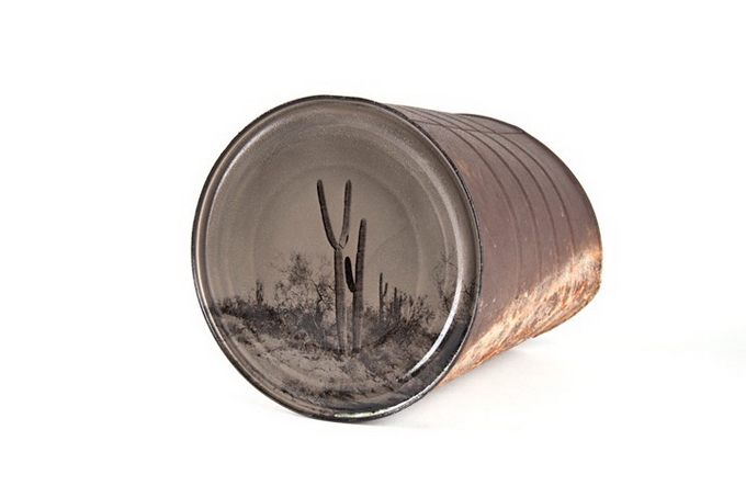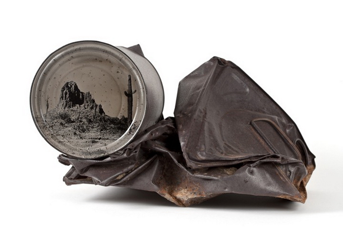 Представляем ашему вниманию работы Дэвида Эмитта Адамса, который создает картины на старых консервных банках, найденных в Аризонской пустыне. Серия называется «Conversations with History» («Разговор с историей»).