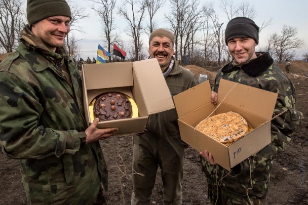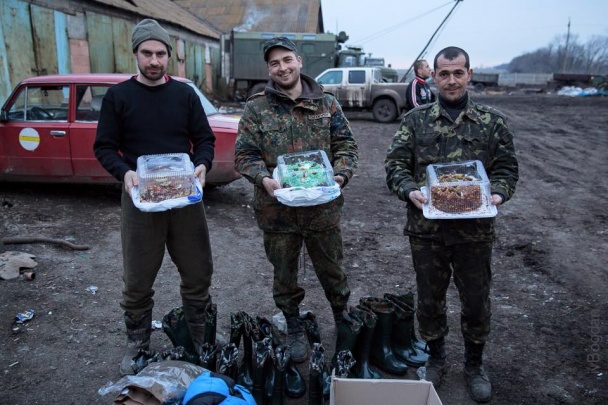Отдельные «бонусы» приносит весна. Морозы больше не держат форму вырытых блиндажей и окопов. Сырая весенняя земля дышит и движется, обсипаючись вниз. Приходится активно махать лопатой, чтобы откопаться на безопасную глубину. Чтобы помочь, волонтеры привезли большое количество резиновых сапог, комбинезонов для танкистов и механиков, разгрузки, спальники, термобелье, штаны для езды на бронетехнике, военные носки, шапки и балаклавы. Девушки с кулинарной сотни передали бойцам около двух десятков тортов, кексов, блинчиков, замороженных вареников и сухие борщи.