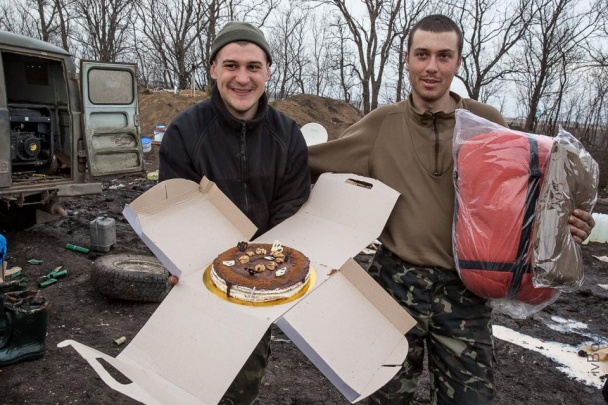 Отдельные «бонусы» приносит весна. Морозы больше не держат форму вырытых блиндажей и окопов. Сырая весенняя земля дышит и движется, обсипаючись вниз. Приходится активно махать лопатой, чтобы откопаться на безопасную глубину. Чтобы помочь, волонтеры привезли большое количество резиновых сапог, комбинезонов для танкистов и механиков, разгрузки, спальники, термобелье, штаны для езды на бронетехнике, военные носки, шапки и балаклавы. Девушки с кулинарной сотни передали бойцам около двух десятков тортов, кексов, блинчиков, замороженных вареников и сухие борщи.