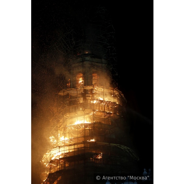 Замминистра культуры Москвы Георгий Перумов не стал комментировать причины пожара, сказав, что их установят эксперты МЧС. Перумов лишь отметил, что последние ремонтные работы на колокольне закончились в 11 утра воскресенья.