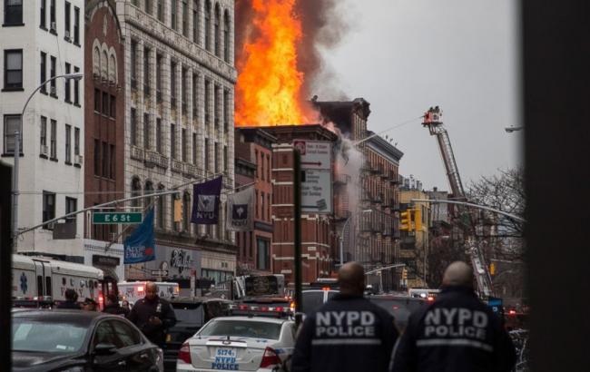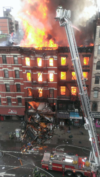 Сообщается, что огонь перекинулся на соседние здания; близлежащий район Ист-вилладж эвакуировалось.