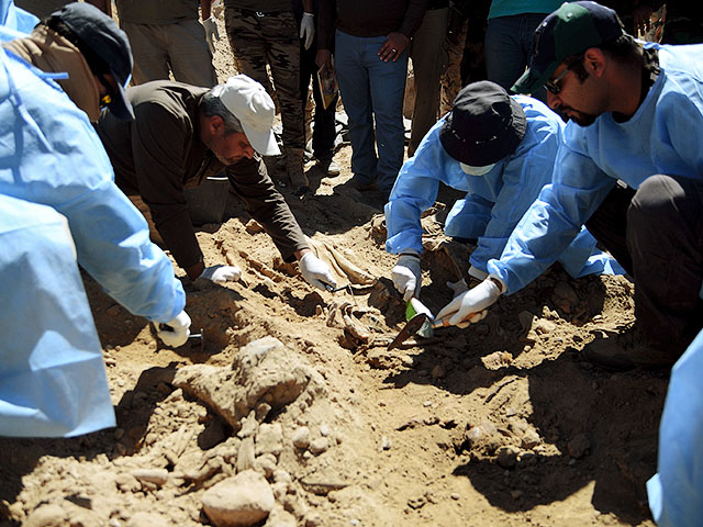 Эти захоронения были обнаружены по грудам удостоверений личности, которые лежали на могилах. Специалисты считают, что это останки солдат и призывников с военной базы «Шпихер». Их взяли в плен боевики ИГ примерно 10 месяцев назад. Тогда пропали без вести 1700 военнослужащих, сообщает NEWSru.com.