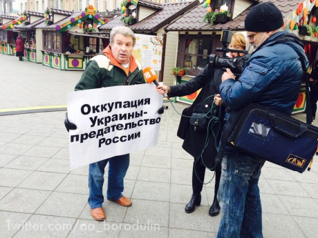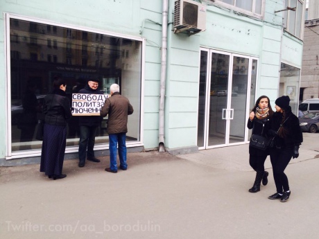 У памятника Юрию Долгорукову на Тверской ул. активисты выходили с плакатами по очереди.