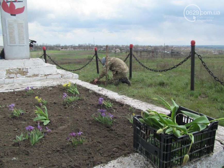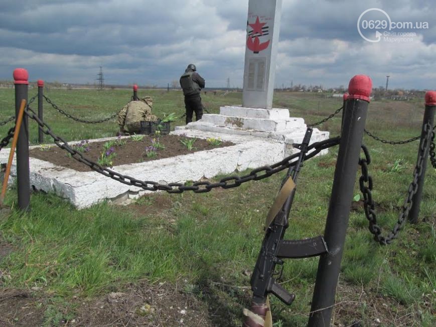 Возле села Павлополь, в районе Мариуполя, участники АТО привели в порядок памятник героям Великой Отечественной войны, который находится возле их позиций. Братская могила, в которой похоронено более 30 воинов-освободителей, находится между противостоящими сторонами. Из-за постоянной опасности обстрелов местные жители не имеют возможности ухаживать за памятником. Этим решили заняться бойцы одного из мотопехотных батальонов ВСУ. Они проверили местность на наличие мин и под огневым прикрытием отремонтировали и покрасили ограждение, привели в порядок земельный участок и посадили цветы, сообщает 0629.com.ua.