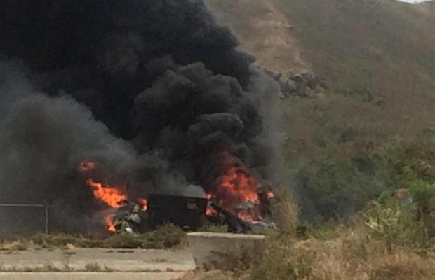 Причина происшествия пока неизвестна, на месте аварии работают спасатели. На кадрах с места ЧП видно пламя и густой дым.