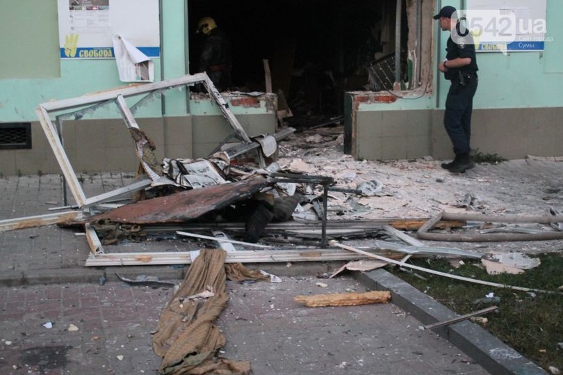 «Сегодня в три часа утра милиционеры патрульной службы, которые несли службу на улице Воскресенской, услышали взрыв. Прибыв на место происшествия, они увидели пожар на первом этаже здания, где находился офис сумского ячейки одной из политических партий. Огонь охватил все помещение. Чтобы предотвратить человеческие жертвы и распространение огня на квартиры сумчан, которые располагались на втором этаже, правоохранители вызвали пожарных и организовали эвакуацию жителей дома», — рассказали правоохранители, сообщает «Новое время».
