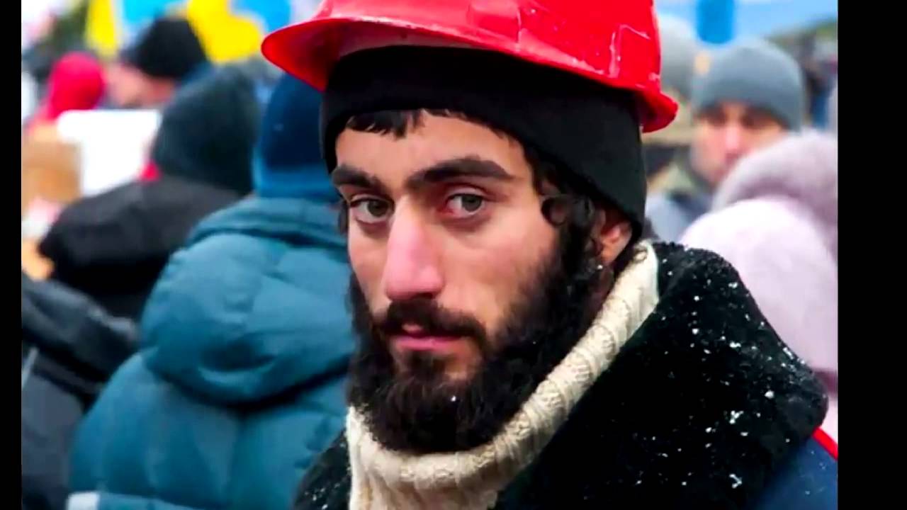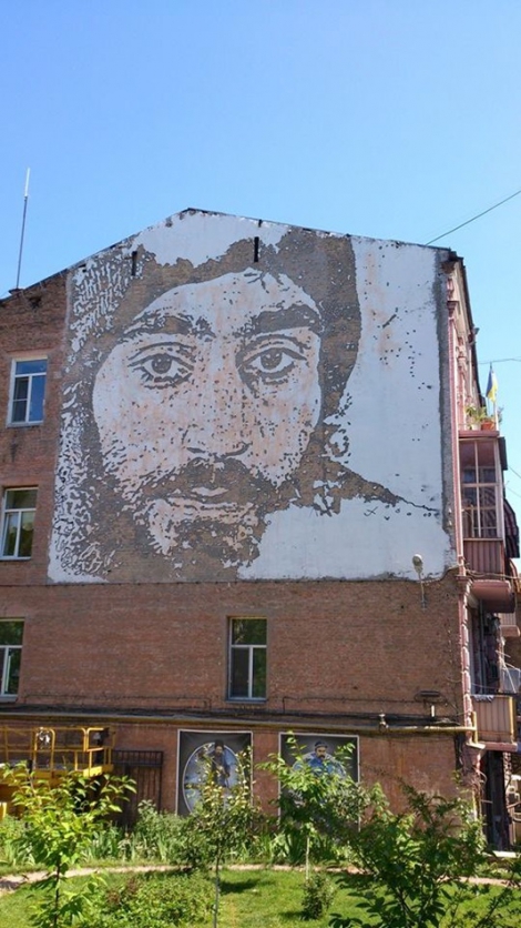 На одном из домов рядом со сквером Небесной сотни появилось большое граффити погибшего на Институтской от выстрела снайпера Сергея Нигояна.