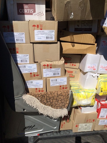 Кроме того, советник Порошенко опубликовал снимки товара, который пытались незаконно провезти через линию соприкосновения. Так, в коробках и мешках можно увидеть овощи, чай, какао, лавровый лист, соль, сыпучие продукты.