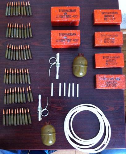 На завершающей стадии операции, в лесном массиве вблизи поселка Новая Любомирка Ровенского района, злоумышленник пытался избавиться от пакета, в котором обнаружено еще семь гранат РГД-5 с запалами, четыре взрывателя к тротиловым шашкам, два метра "бикфордова шнура". Также в полевой палатке, где проживал военный, обнаружено неучтенную гранату РГД-5 с запалом.