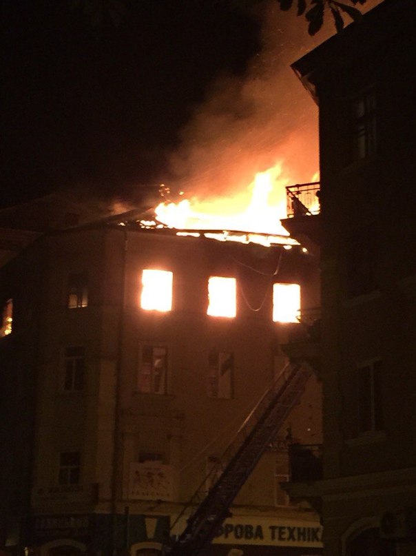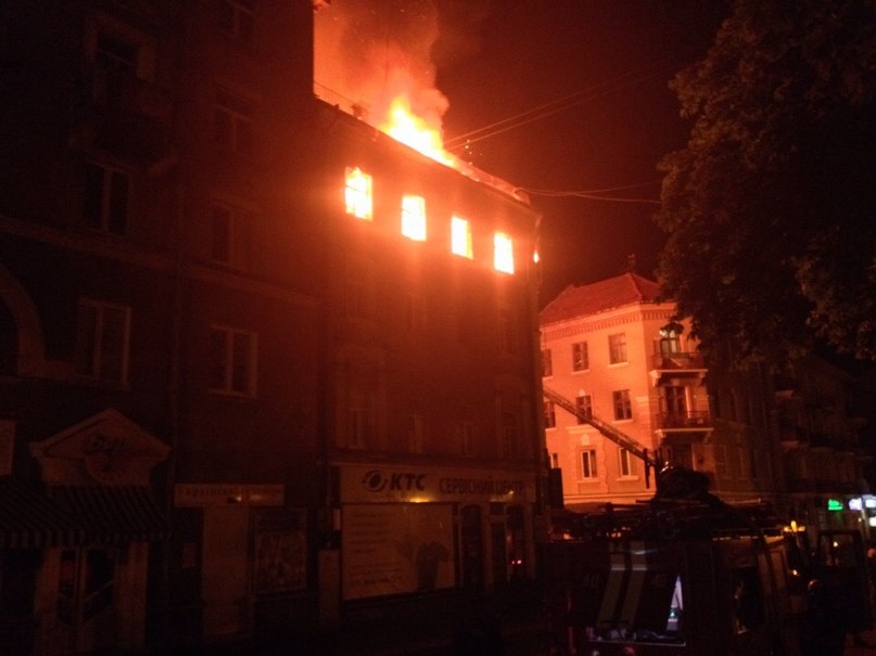 В ночь на 5 августа в Тернополе, на улице Сагайдачного, 1 вспыхнул пожар, огонь охватил верхние этажи и перешел на крышу.