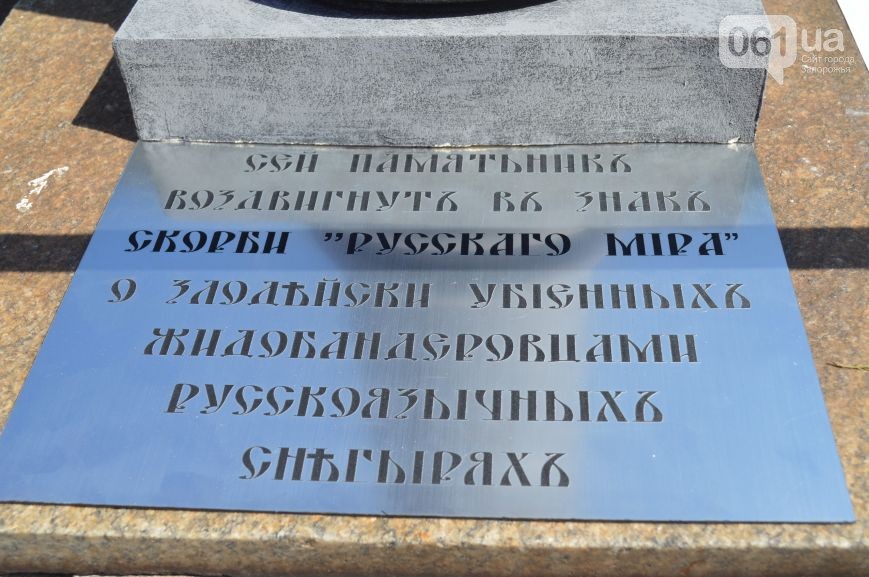 В понедельник, 24 августа, в Запорожье на площади Героев у стен областной государственной администрации торжественно открыли памятник «русскому миру».