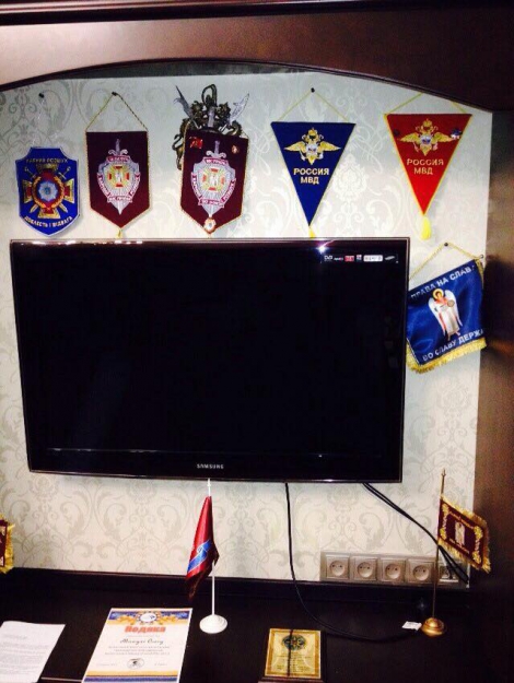 «Россия МВД» — закрыто) Это — обнаруженные во время обыска вот сейчас штандарты захватчика в кабинете задержанного начальника Одесского горуправления милиции. Готов обменять этого «уподобальника» МВД России на наших пленных героев!", написал Матиос .