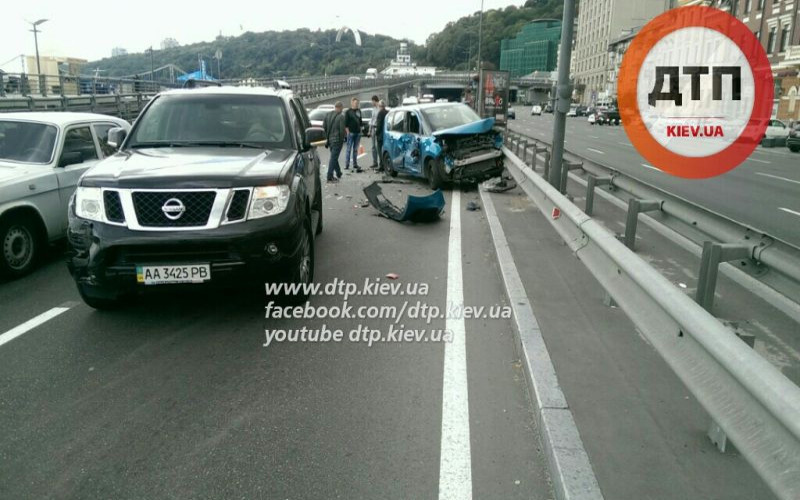 По данным издания, произошло столкновение сразу четырех автомобилей, которые двигались по Набережно-Хрещатицкой от туннеля на Почтовой площади. «Citroen врезался в отбойник. Один человек пострадал. Им оказалась беременная женщина-пассажир Citroen. Она покинула место ДТП на такси», — говорится в сообщении.