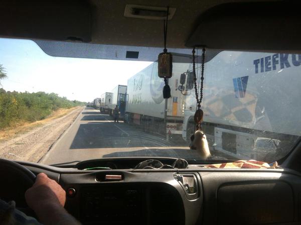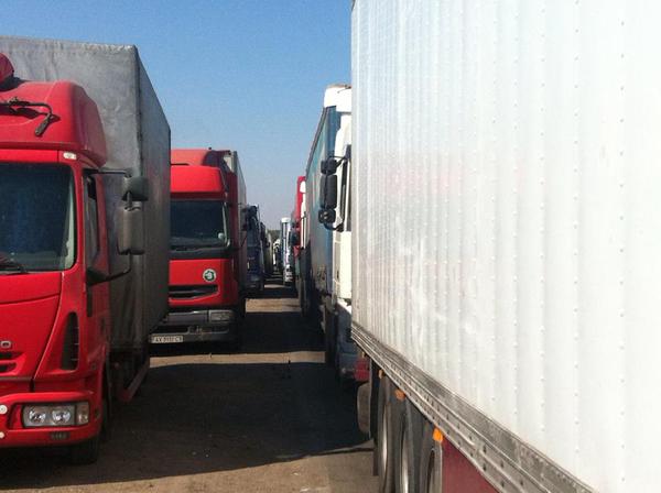 Из-за блокады Крыма в поселке Каланчак Херсонской области на границе с полуостровом грузовые машины выстроили в очередь около 1 км. Очередь из фур выстроилась в два ряда.