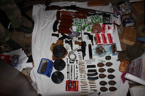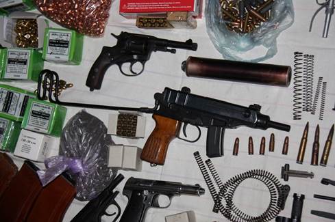 Во время обысков сотрудники спецслужбы изъяли два автомата АКС-74, по одному АК-47 и АКСУ-74, 13 пистолетов, два из которых с глушителями, автомат ППШ, три пистолета-пулемета и одно полуавтоматическое гладкоствольное ружье.