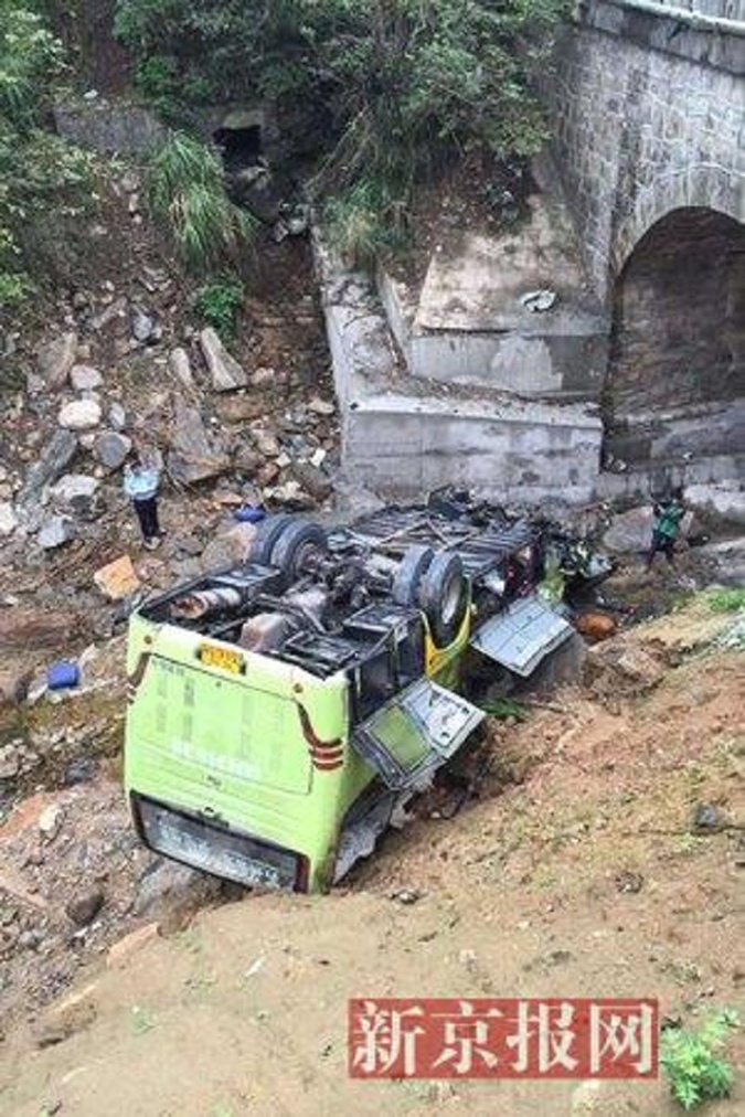 В китайской провинции Аньхой произошло смертельное ДТП. Водитель автобуса не справился с управлением и тот на полной скорости упал с высоты моста вниз.