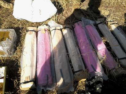 Спецслужбы изъяли восемь реактивных противотанковых гранатометов, два ящика с гранатами для подствольного гранатомета, 12 килограмм тротила в шашках, два килограмма пластида, большое количество патронов различного калибра, 100 детонаторов, 20 ручных гранат и прочее.