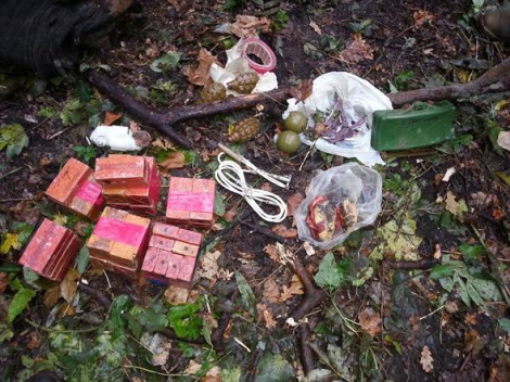 В Артемовском районе Донецкой области правоохранители обнаружили в лесу замаскированный в дереве тайник со взрывчаткой.