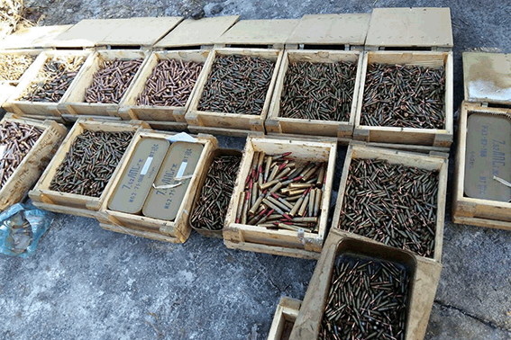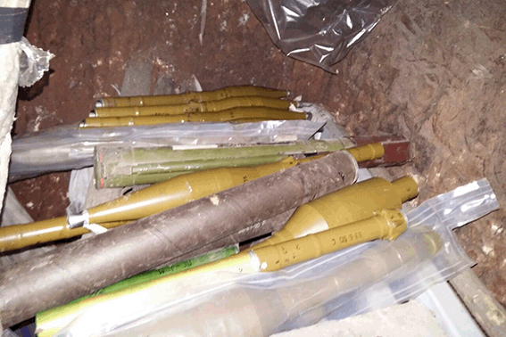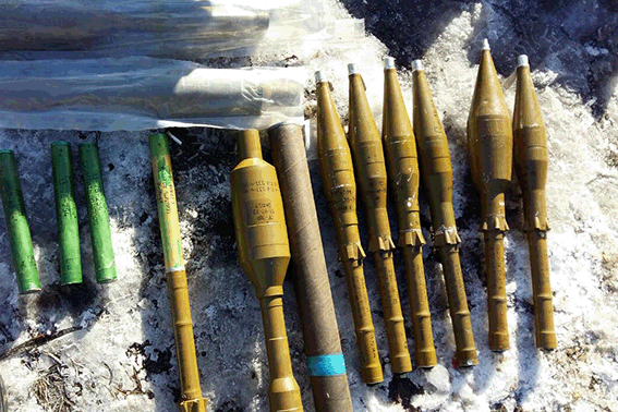 Из тайника правоохранители изъяли «около 19 тысяч патронов различного калибра, два выстрела ВОГ 25, семь гранатометов, девять выстрелов и шесть маршевых двигателей к гранатомету РПГ-7».