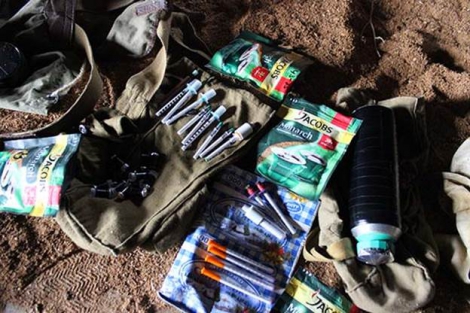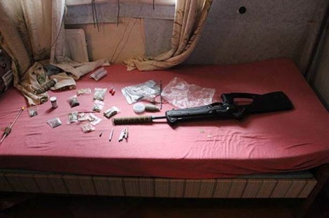 У него изъяли две ручные гранаты, большое количество разнокалиберных патронов, самодельные взрывные устройства, дымовые шашки, около 1 килограмма взрывчатого вещества, винтовку и наркотические средства.