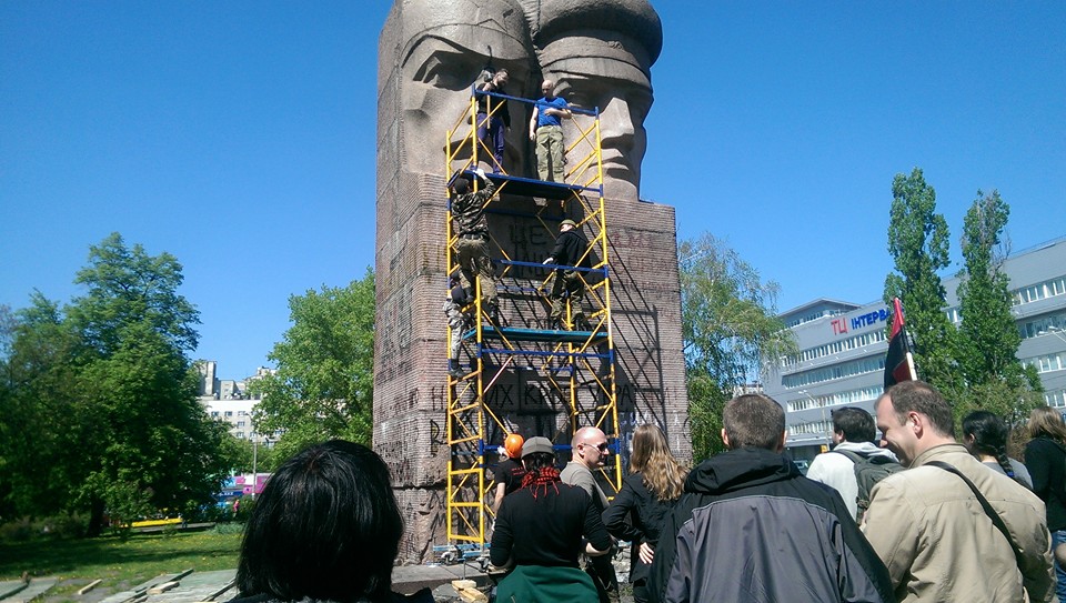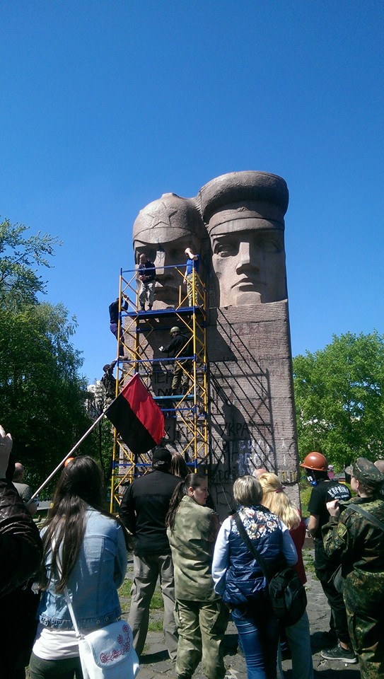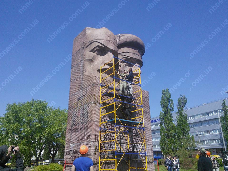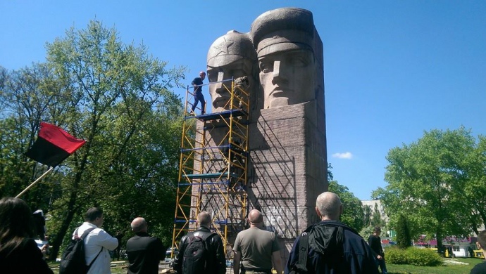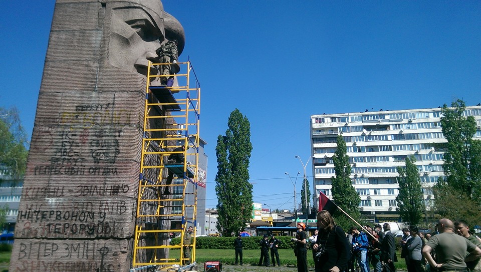 В четверг, 28 апреля, активисты в рамках декоммунизации приступили к разрушению памятника чекистам-бойцам революции возле станции метро «Лыбедская» в Киеве.