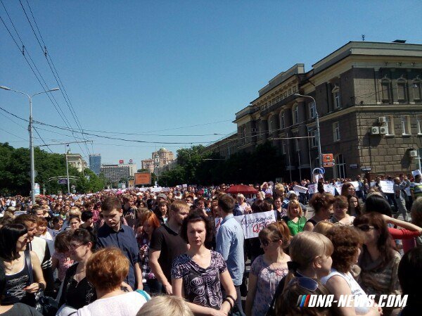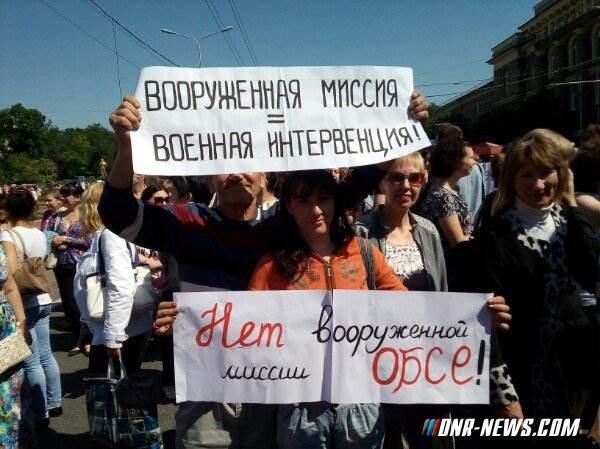 В пятницу, 10 июня, на центральной площади оккупированного Донецка незаконная вооруженная группировка «Донецкая народная республика» организовала митинг против миссии Организации по безопасности и сотрудничеству в Европе (ОБСЕ). Как стало известно «Фразе», жители городов и районов, подконтрольных террористам, прошли колонной по улице Артема «в знак протеста против планов введения вооруженной миссии ОБСЕ на Донбасс».