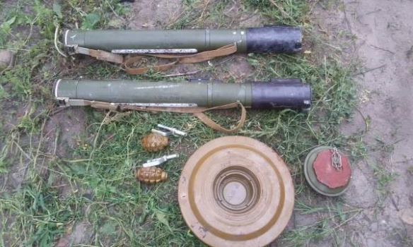Согласно сообщению, тайник боеприпасов был скрыт в лесном массиве на берегу реки Северский Донец. Из него правоохранители изъяли два гранатомета РПГ-22 и танковую мину с часовым взрывателем.